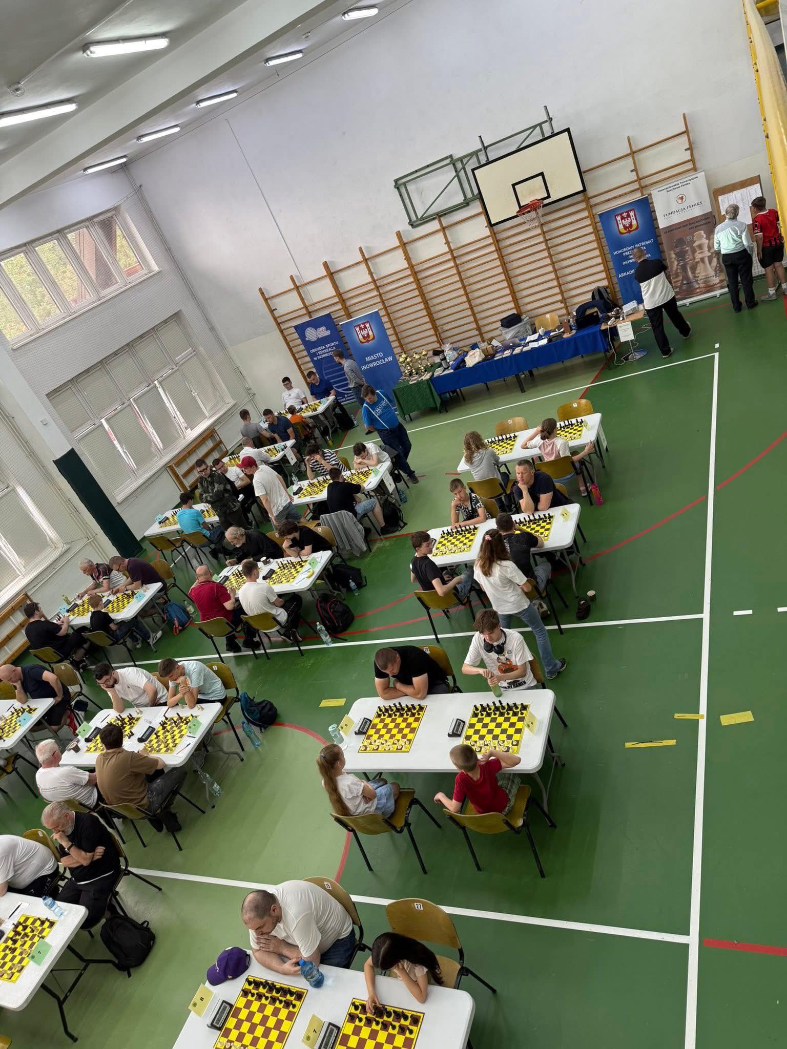 inowroclaw.info.pl Projekt współfinansowany był przez Urząd Miasta Inowrocławia. Impreza, pierwsza o tej randze w naszym mieście zakończyła się pełnym sukcesem pod względem sportowym jak i organizacyjnym. W sportowych szrankach wystąpiło 102 szachistów ( niebywała frekwencja i olbrzymia radość organizatorów ) , którzy przybyli z takich miejscowości jak : Bydgoszcz, Toruń, Złotniki Kujawskie, Janikowo, Mrocza, Gniezno a także Włocławek, Szczecin, Konin, Poznań, Nowe Miasto Lubawskie, Legnica, Płock, Żnin, Golub-Dobrzyń, Wronki, Mosina, Osielsko, Lipno, Łubianka, Popowo, Kórnik, Wierzbinek, Balin, Helenowo. Oprócz sportowej rywalizacji nie zabrakło zapowiadanej grochówki z kuchni polowej przygotowanej przez p. Sebastiana Gołębiewskiego, pajdy chleba ze smalcem wyrobu p. Marka Maćkowiaka oraz tradycyjnych już kanapek p. Prezes Fundacji i mnóstwa innych przysmaków, które rozchodziły się błyskawicznie. Warto dodać, iż z bufetu korzystali również rodzice, opiekunowie jak i pozostali goście. A trzeba wiedzieć , że rywalizację wspierała Fundacja Apaszka , uczestnicy jubileuszowego marszu Nordic Walking oraz mieszkańcy naszego miasta. Zawody prowadził sędzia klasy międzynarodowej FIDE – FA Mirosław Kozielski.